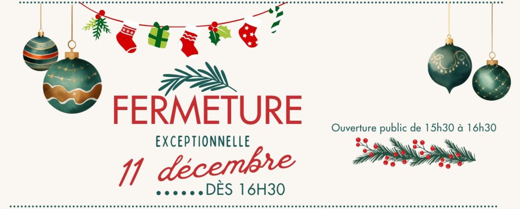 Fermé les vendredis et durant les vacances scolaires (dès le vendredi soir et jusqu’au lundi de la reprise)